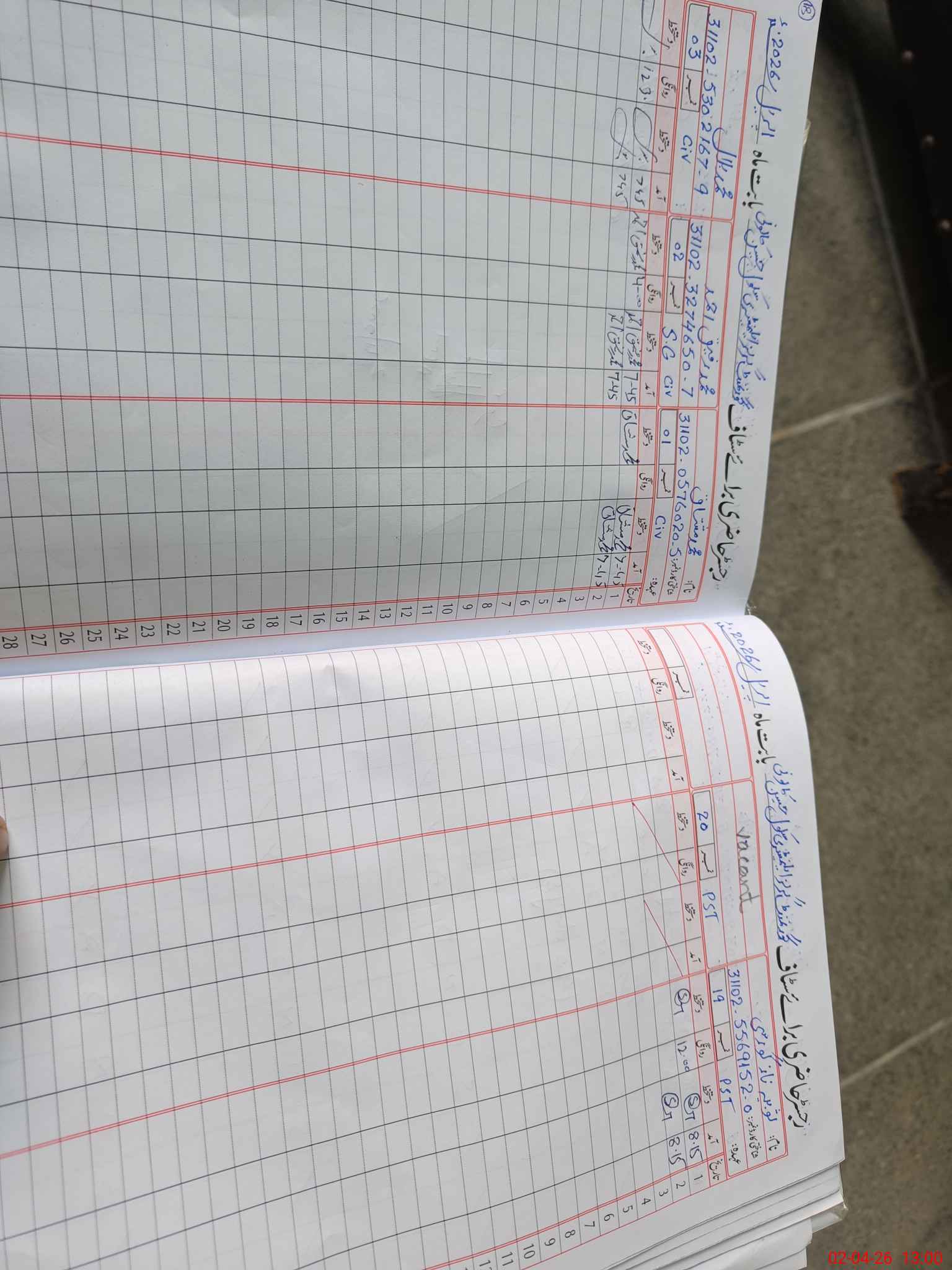 | CNIC | Full Name | Designation | R/C | Absence during last cal. month |