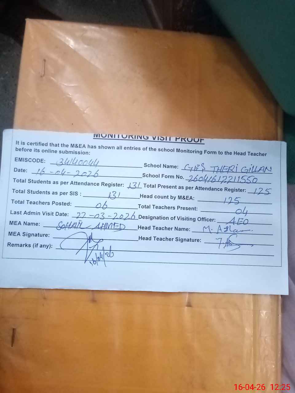 | EMIS Code: 34140044 | Name of School: GES THERI GILLAN | |||
