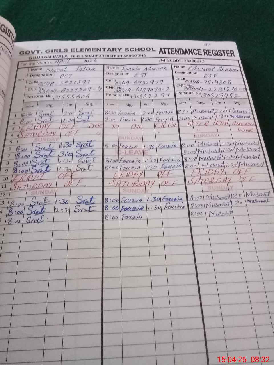 | Name: NU**** FA**** Designation: (School Headmaster's/Headmistress's) SST (SCIENCE) Phone/Cell Number: 03**** |