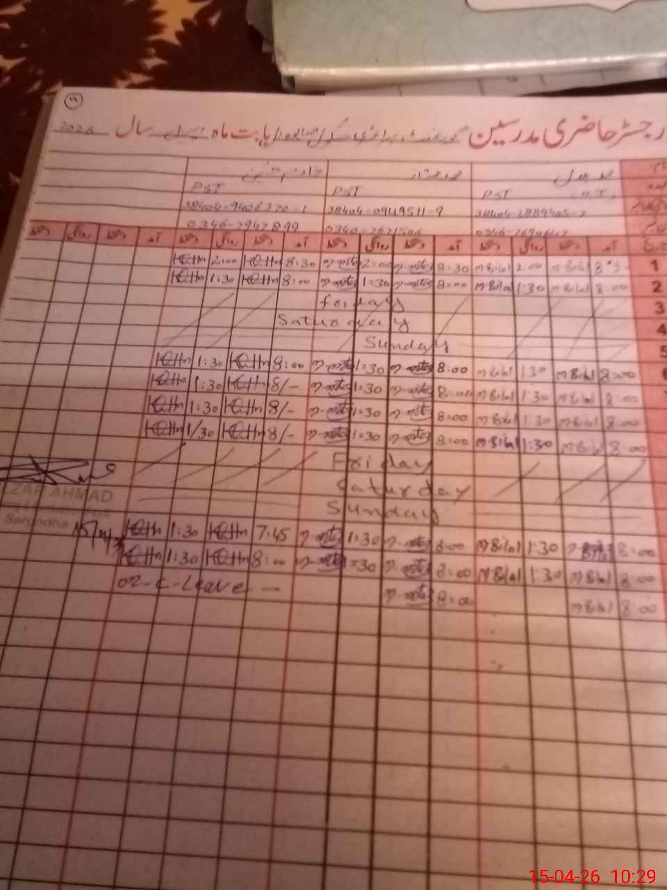 | CNIC | Full Name | Designation | R/C | Absence During Last Calender Month |