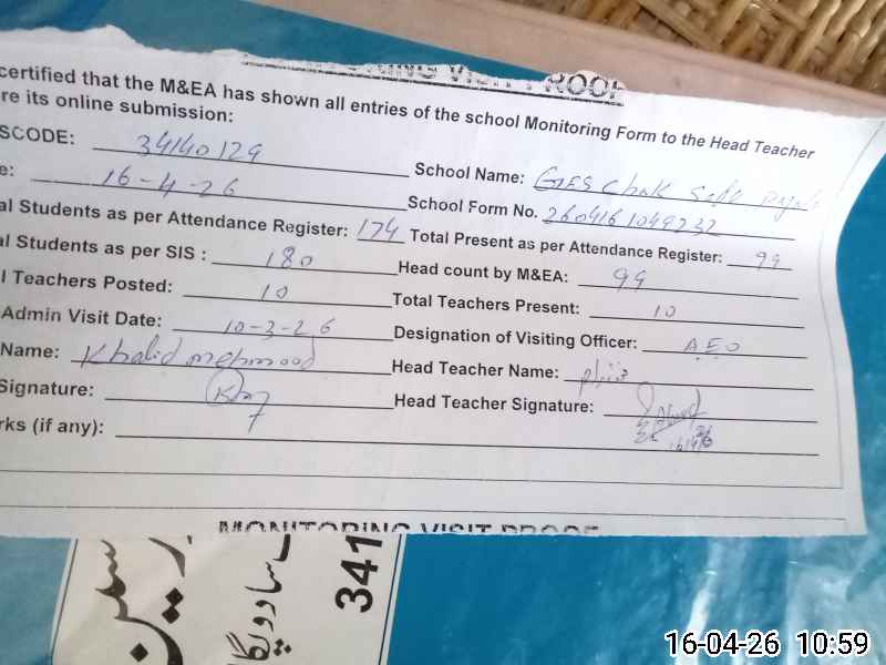 | Certified that this School was Inspected by the Undersigned MEA/DMO Today and the Information Stated Above is as Per Record. | |||||
