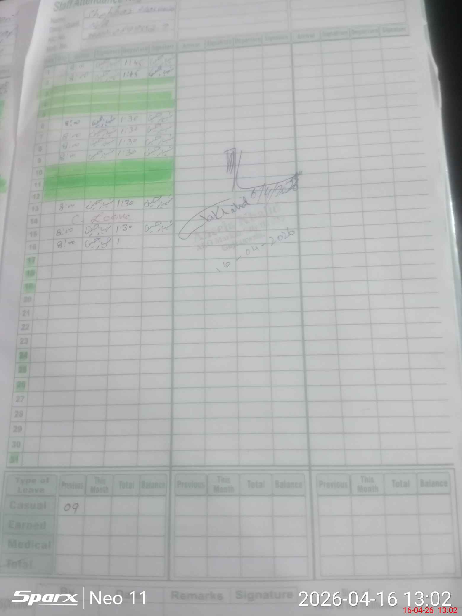 Leave Type | Remarks for today (Leave,Training, Exam,Absent,Late, Other duty) |