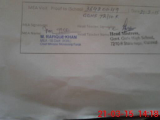 | EMIS Code: 36420049 | Name of School: GGHS 72/10-R, KHANEWAL | |||