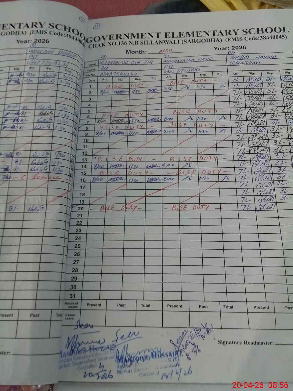 | 38**** | Mu**** Ma**** UdDi**** Zi**** | PST Arts | Regular | 0 | 0 | 0 | 0 | 0 | 0 | 0 | 0 | 0 | Exam Duty |