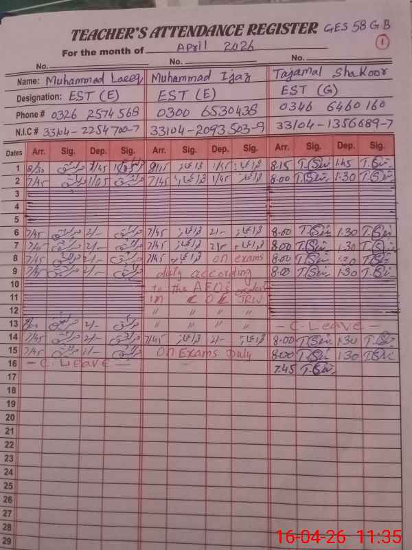 | EMIS Code: 33120076 | Name of School: GES CHAK 58 GB | |||