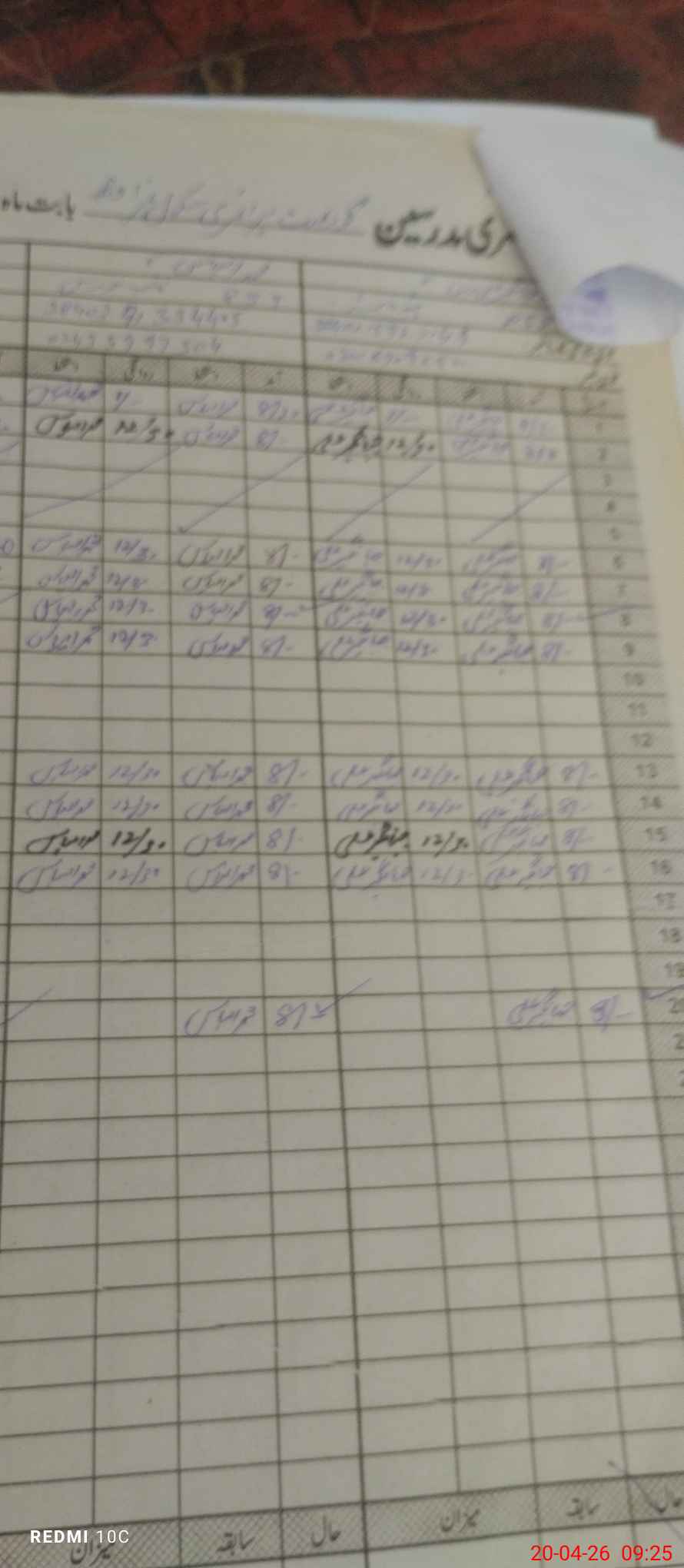 | CNIC | Full Name | Designation | R/C | Absence During Last Calender Month |
