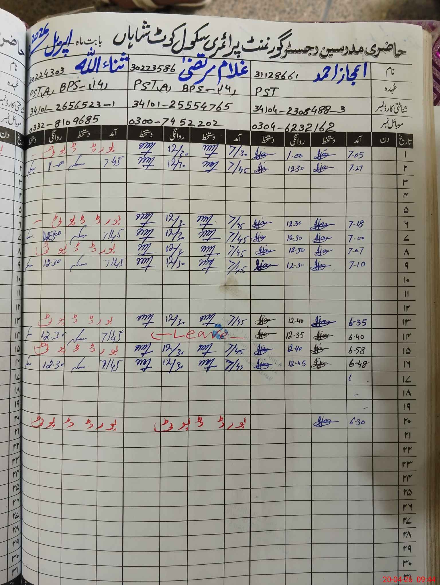 | Name: IJ**** AH**** Designation: (School Headmaster's/Headmistress's) PST Phone/Cell Number: 03**** |