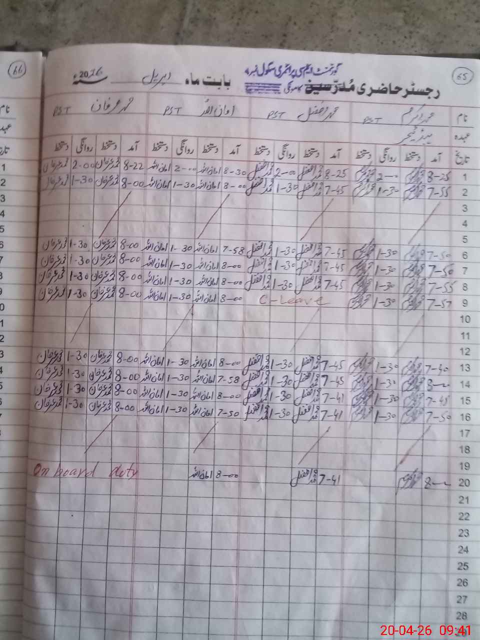 | Leave | Duty | Absent | Maternity | Medical | Ex- Pak |