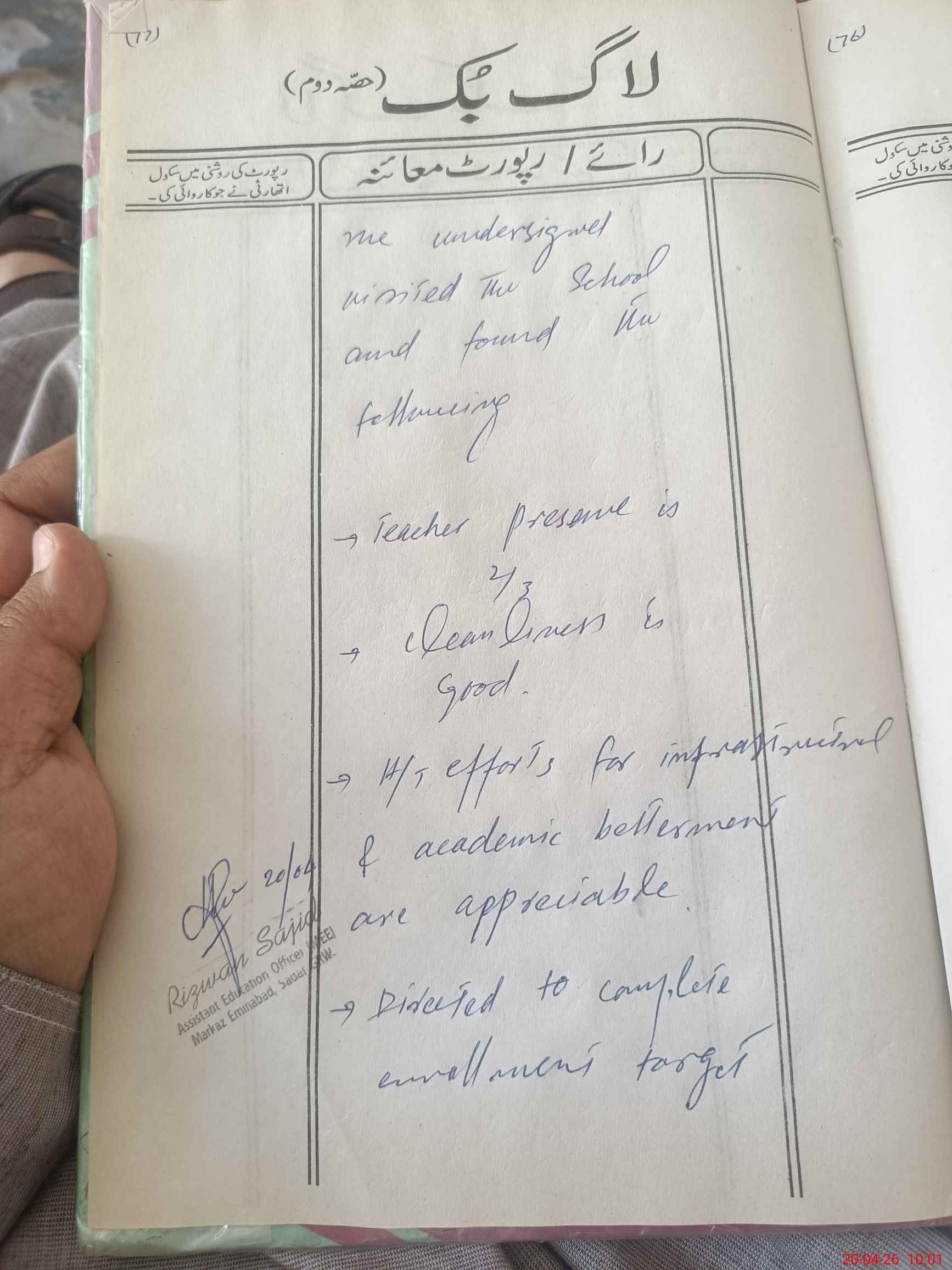 | Certified that this School was Inspected by the Undersigned MEA/DMO Today and the Information Stated Above is as Per Record. | |||||