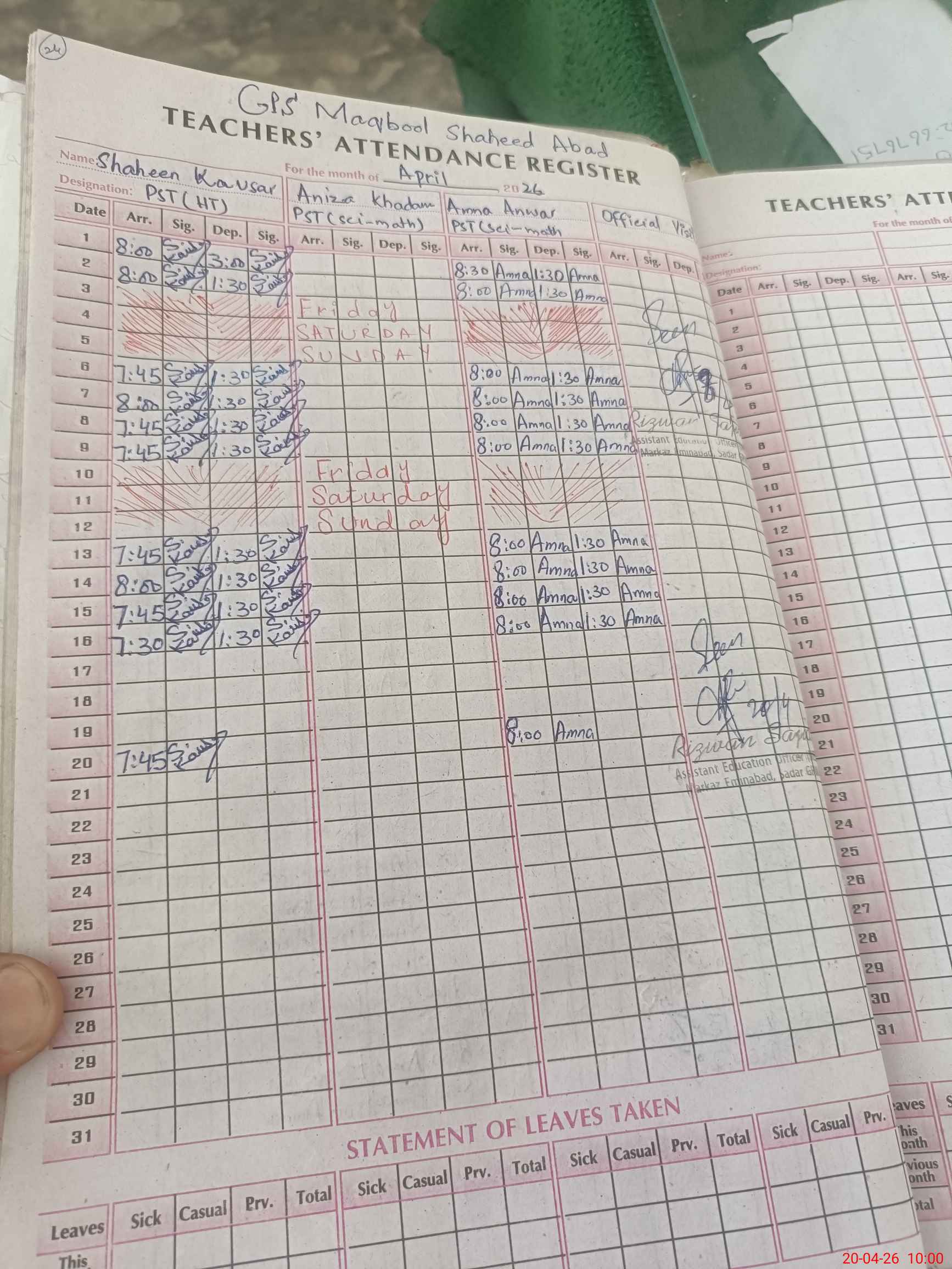 | 34**** | An**** Kh**** | PST Science/Maths | Regular | 0 | 0 | 0 | 0 | 0 | 0 | 0 | 0 | 0 | Absent (Un-Authorized) |