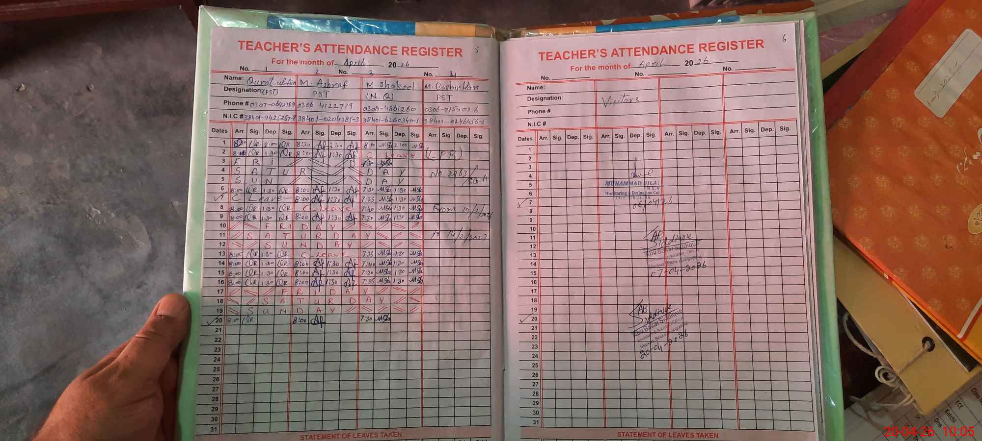 | Attendance Register | Head Teacher | MEA with School | Visit Proof |