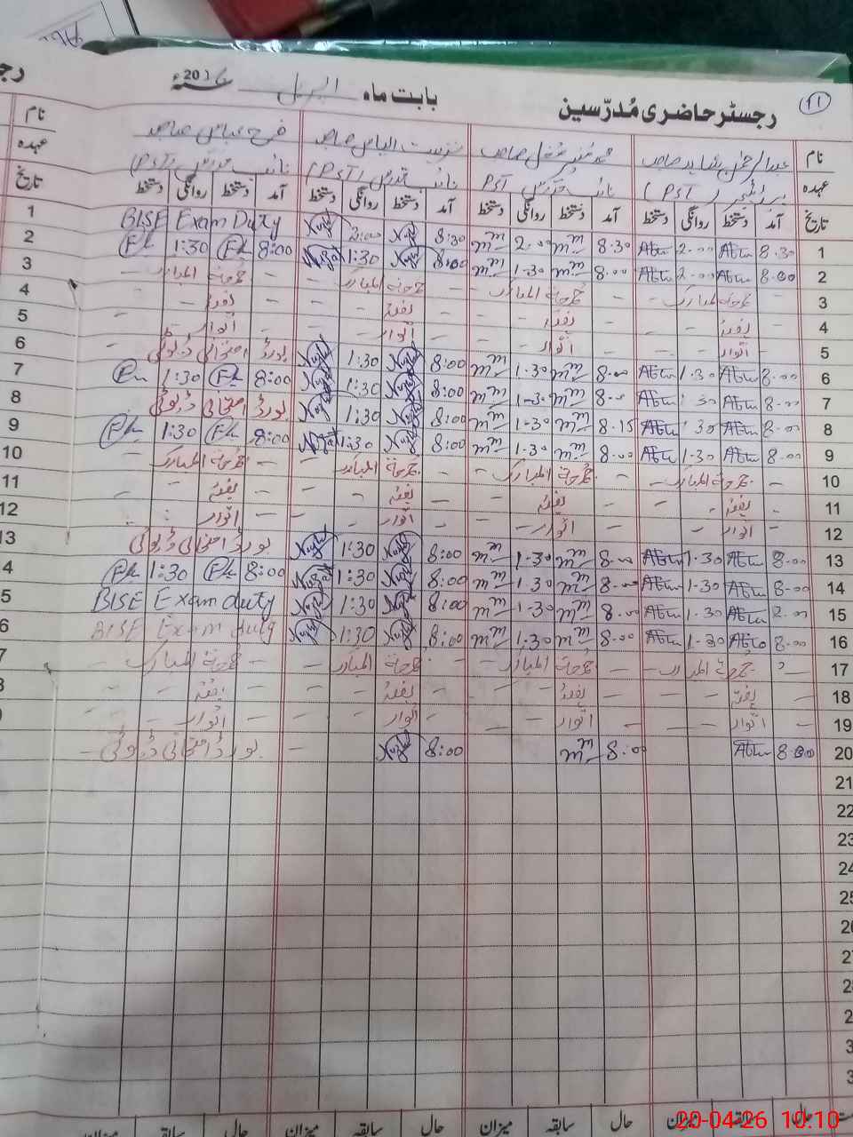 | CNIC | Full Name | Designation | R/C | Absence During Last Calender Month |