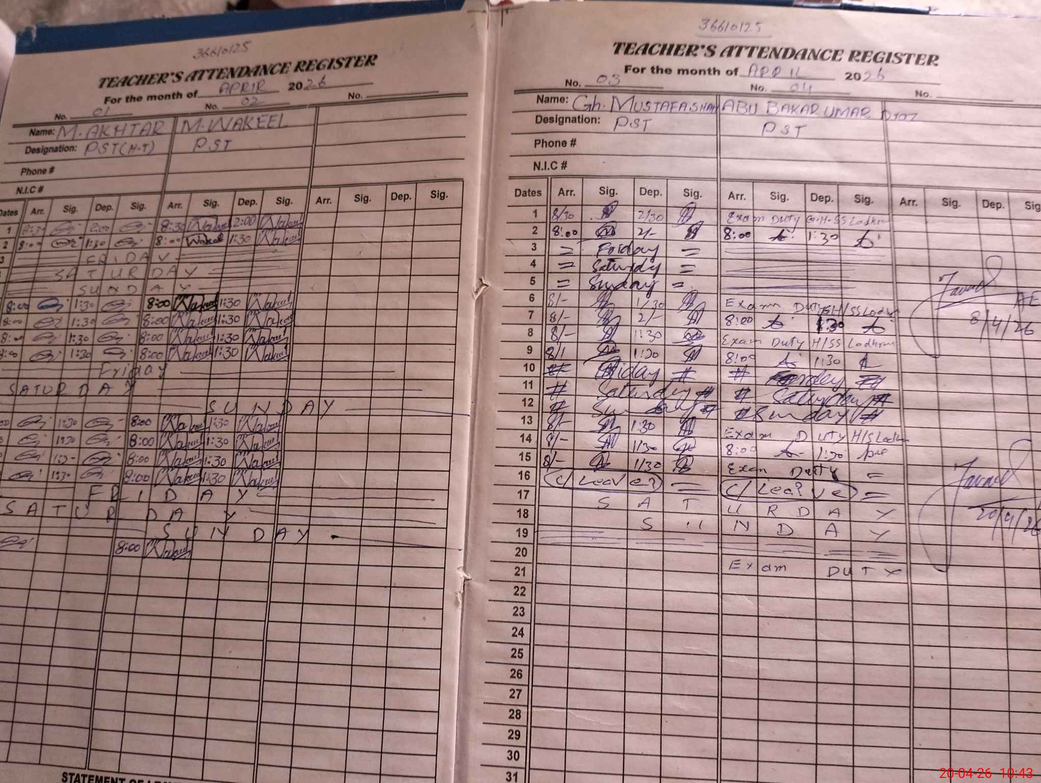 | Name: MU**** Ak**** Designation: (School Headmaster's/Headmistress's) PsT Phone/Cell Number: 03**** |