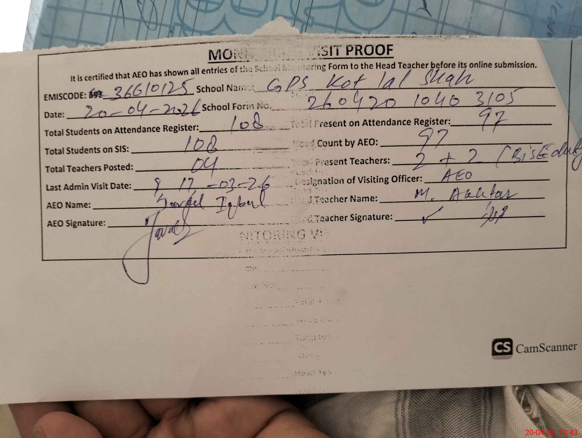 | EMIS Code: 36610125 | Name of School: GPS KOT LAL SHAH | |||