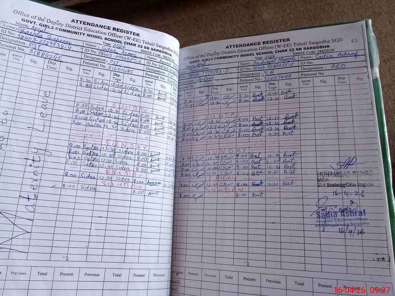 | 38**** | Gh**** Sh**** | PST Arts | Regular | 0 | 0 | 0 | 0 | 0 | 0 | 0 | 0 | 0 | Maternity |