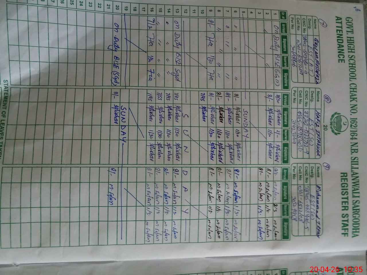 | CNIC | Full Name | Designation | R/C | Absence During Last Calender Month |