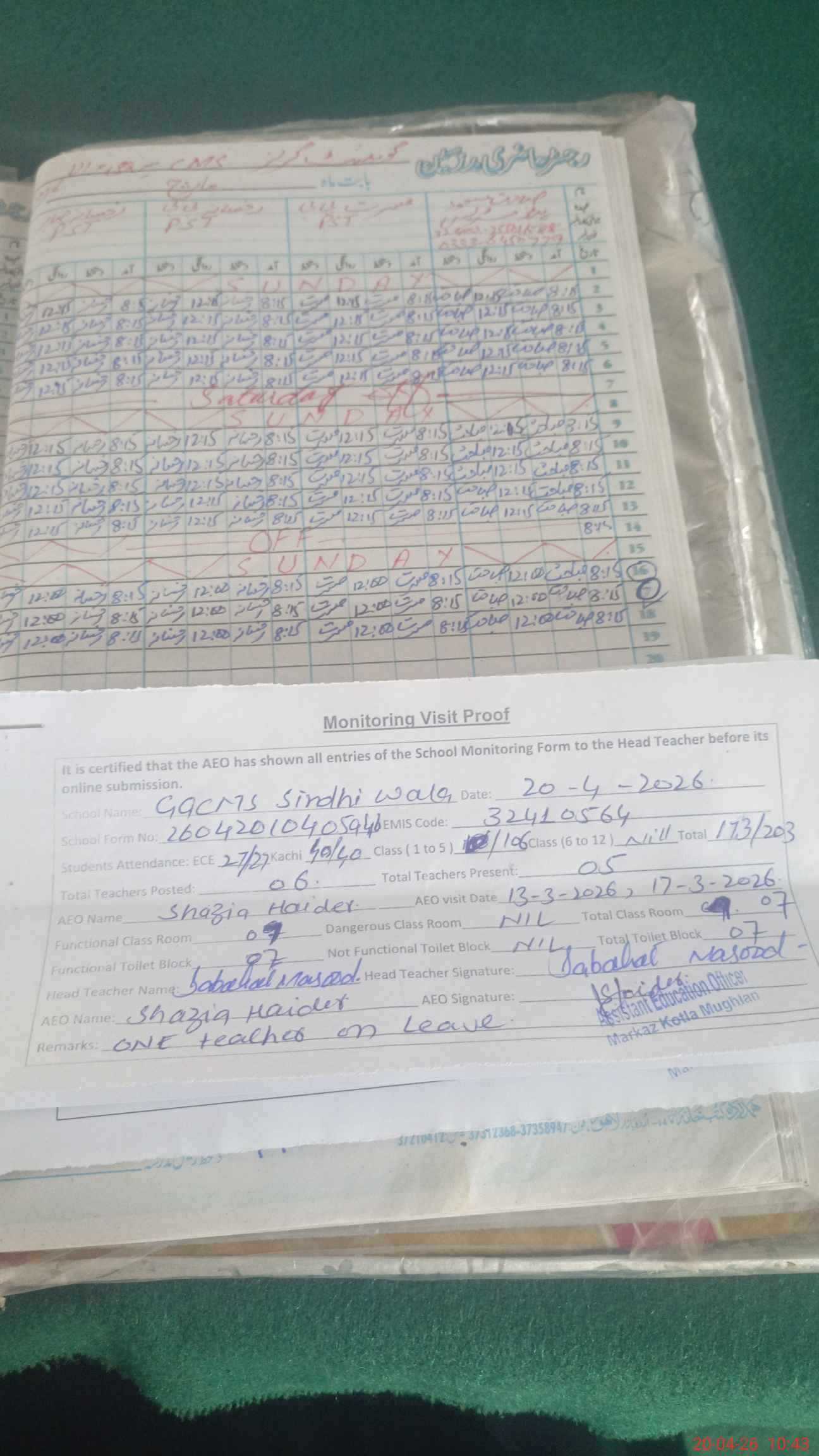 | EMIS Code: 32410564 | Name of School: GGCMS SINDHI WALA | |||