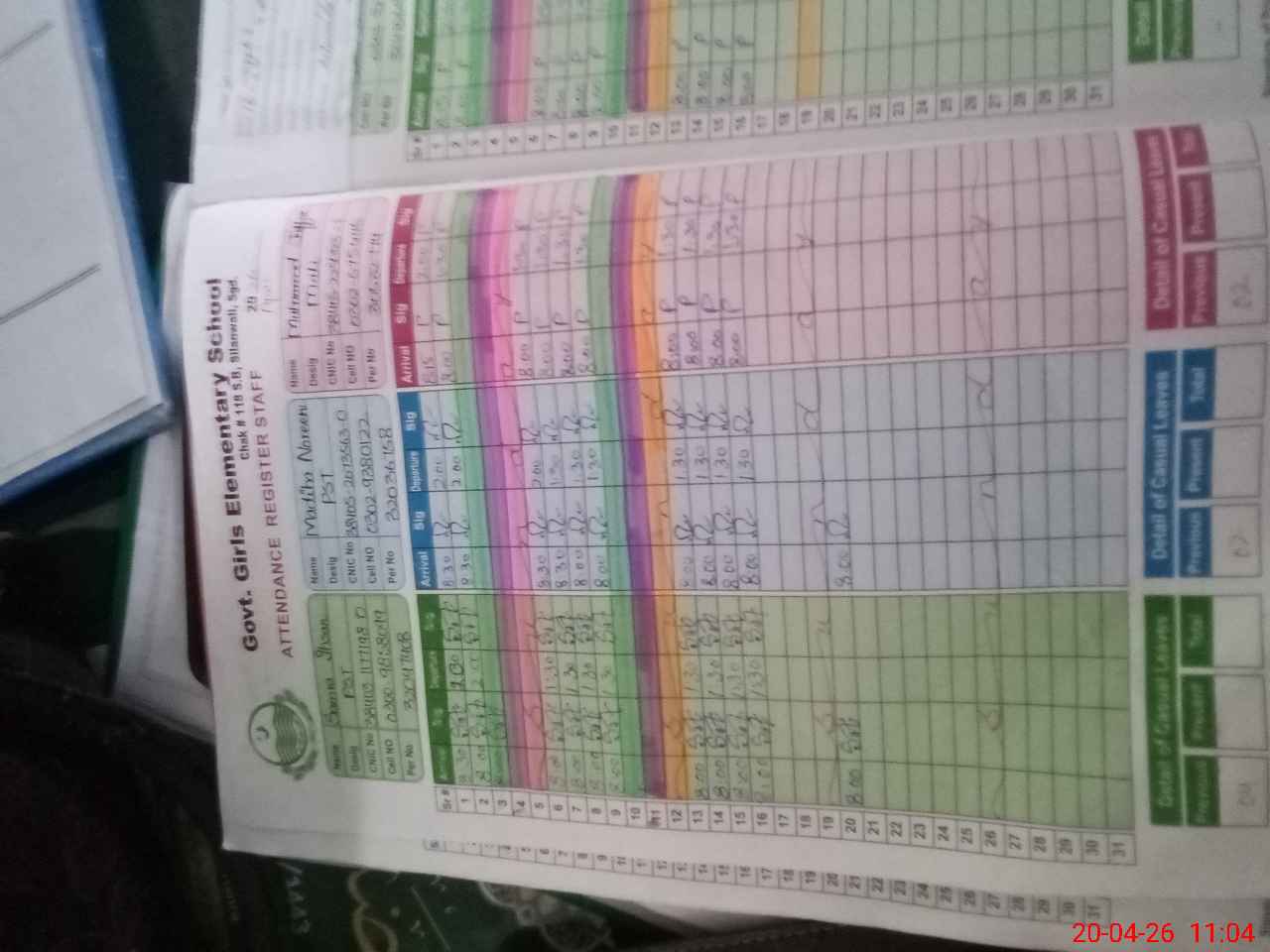 | CNIC | Full Name | Designation | R/C | Absence During Last Calender Month |