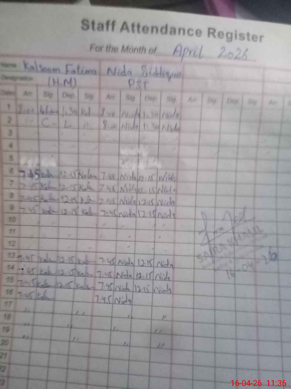 | Monitoring Date: 16-04-2026 | Start Time: 16-04-2026 10:42 AM | End Time: 16-04-2026 12:23 PM | Name of MEA: SA**** KH**** | |