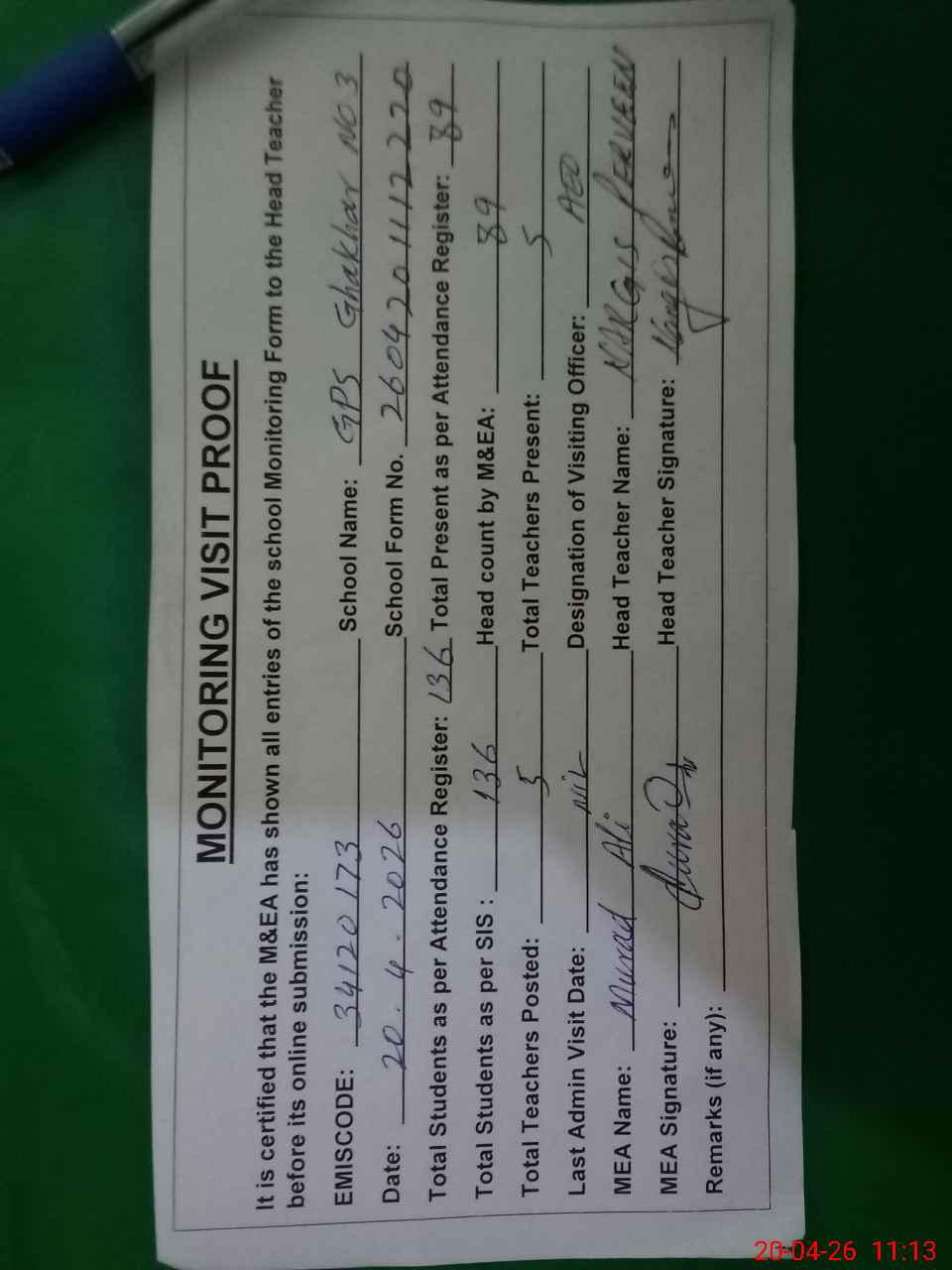 | EMIS Code: 34120173 | Name of School: GPS GHAKHAR NO.3 | |||