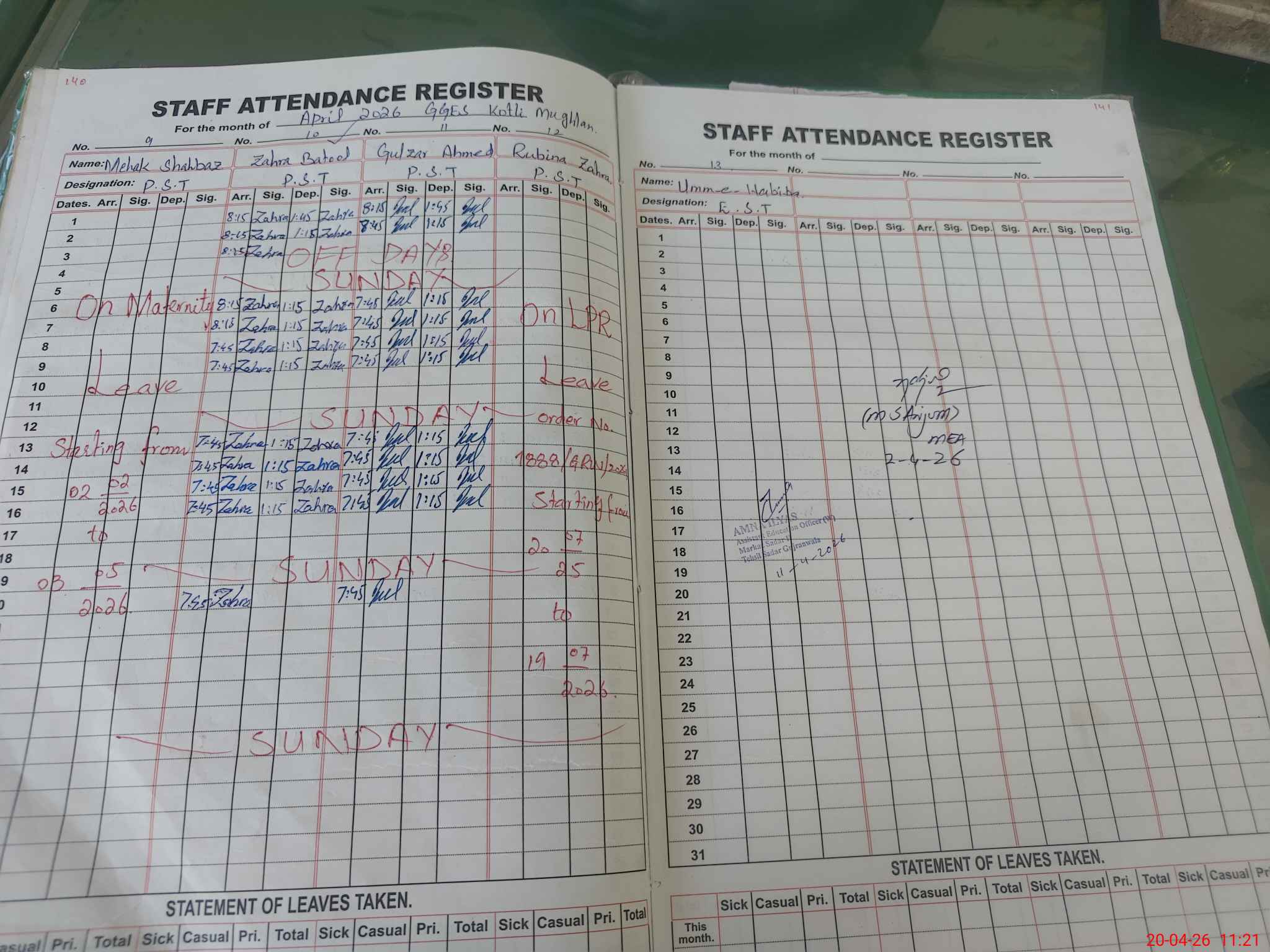 | 34**** | Um**** Ha**** | EST (Math) | Regular | 0 | 0 | 0 | 0 | 0 | 0 | 0 | 0 | 0 | Absent (Un-Authorized) |