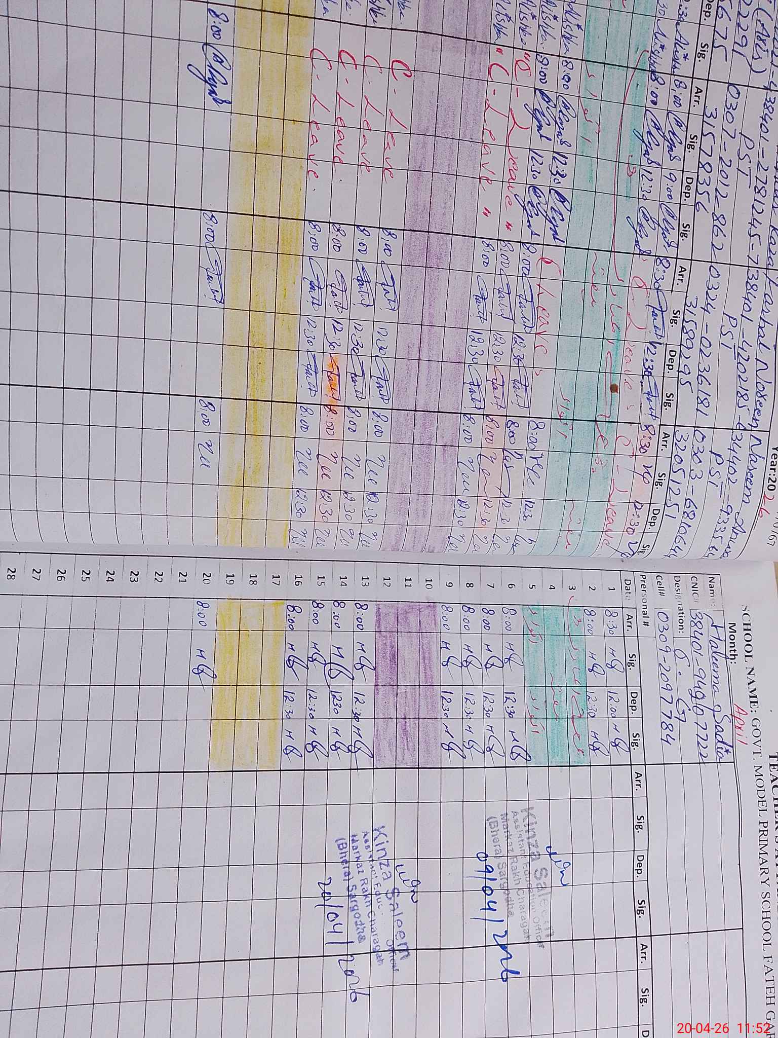 | CNIC | Full Name | Designation | R/C | Absence During Last Calender Month |