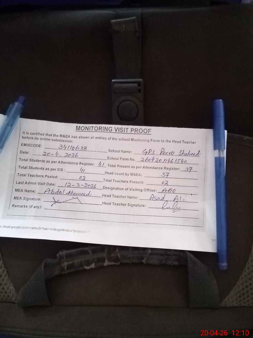 | EMIS Code: 34110638 | Name of School: GPS PEERU SHAHEED | |||