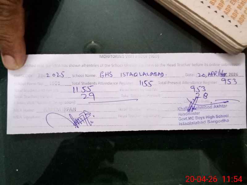 | EMIS Code: 38420025 | Name of School: GHS MC ISTAQLAL ABAD SARGODHA | |||