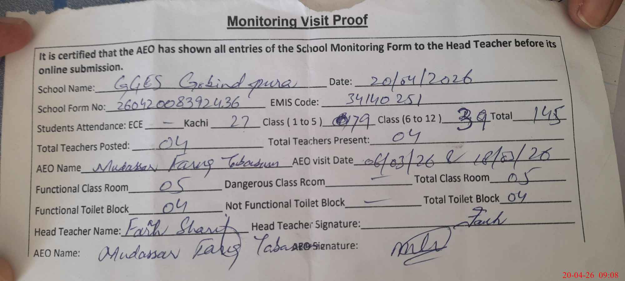 | EMIS Code: 34140251 | Name of School: GGES GOBIND PURA | |||