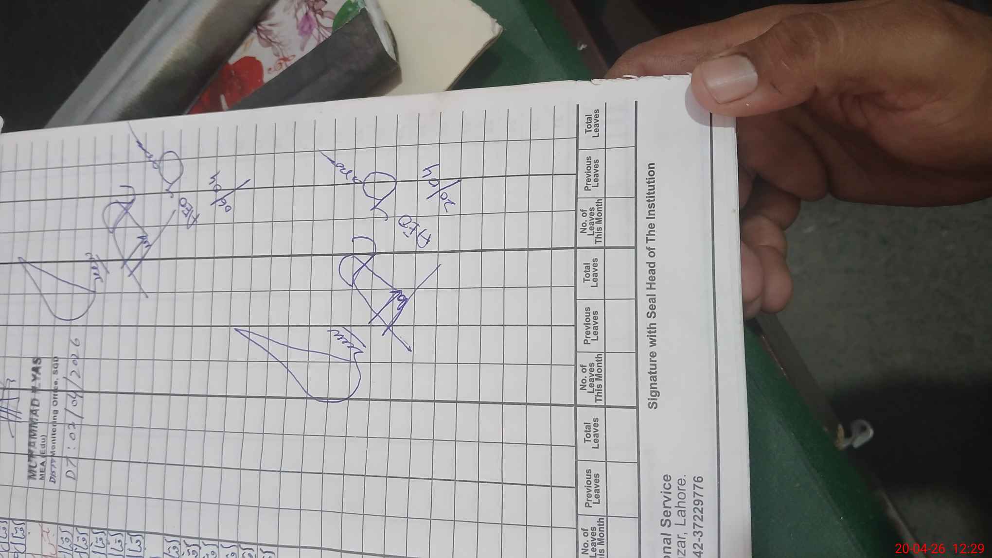 | Name: SA**** HU**** Designation: (School Headmaster's/Headmistress's) PST Phone/Cell Number: 03**** |