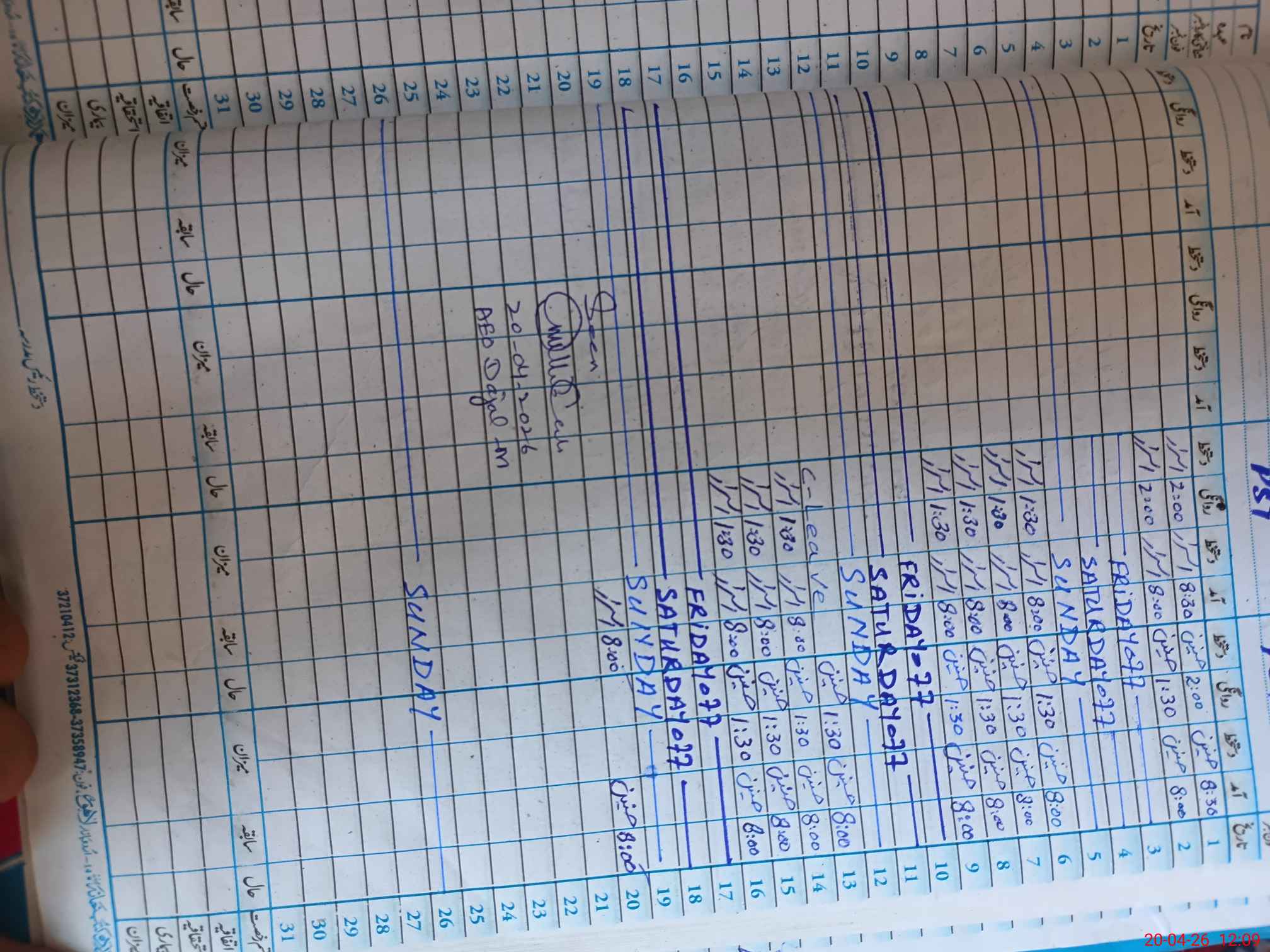 | CNIC | Full Name | Designation | R/C | Absence During Last Calender Month |