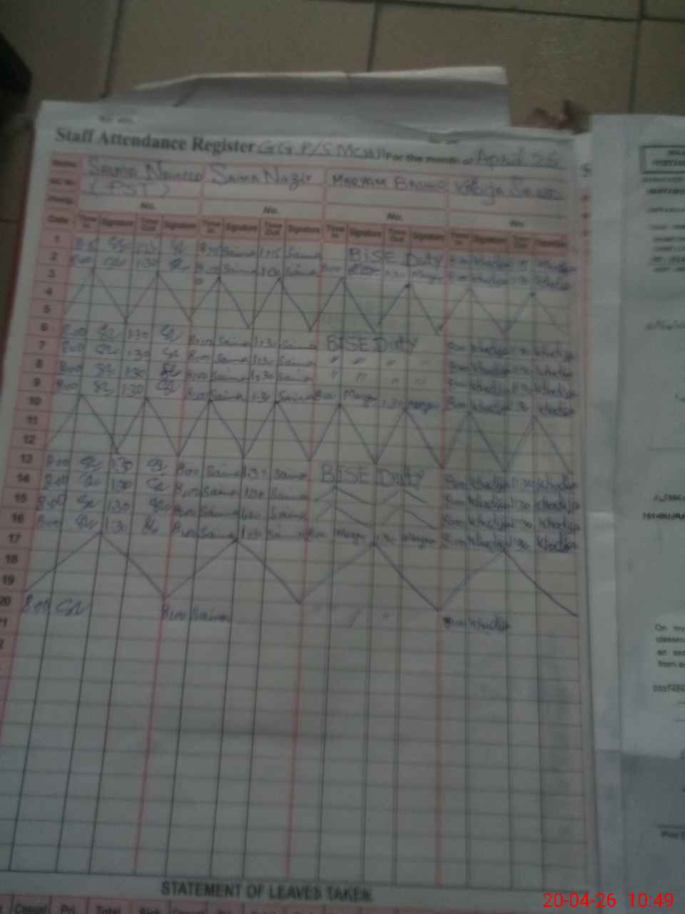| Leave | Duty | Absent | Maternity | Medical | Ex- Pak |