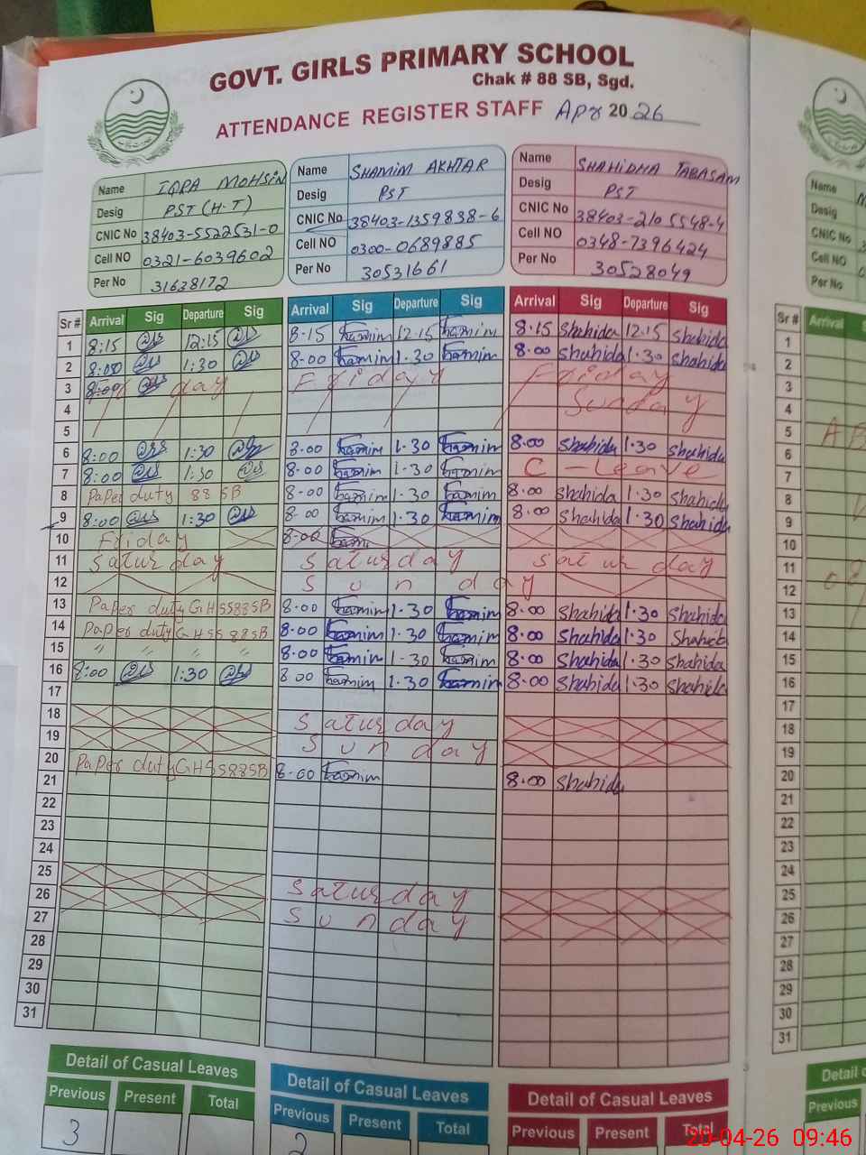 | 38**** | Iq**** Mo**** | PST Science/Maths | Regular | 0 | 0 | 0 | 0 | 0 | 0 | 0 | 0 | 0 | Exam Duty |