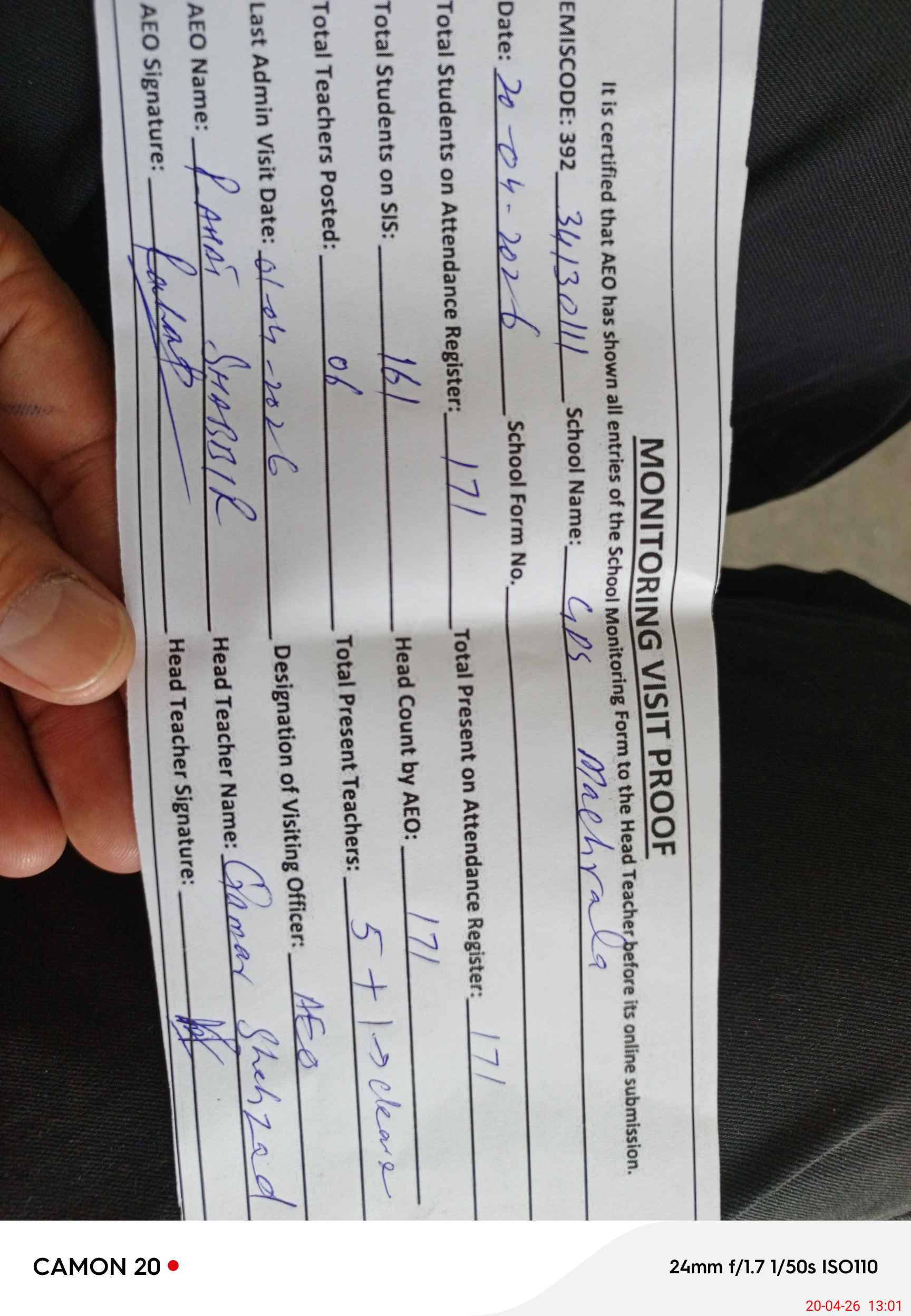 | EMIS Code: 34130111 | Name of School: GPS MACHRALA | |||