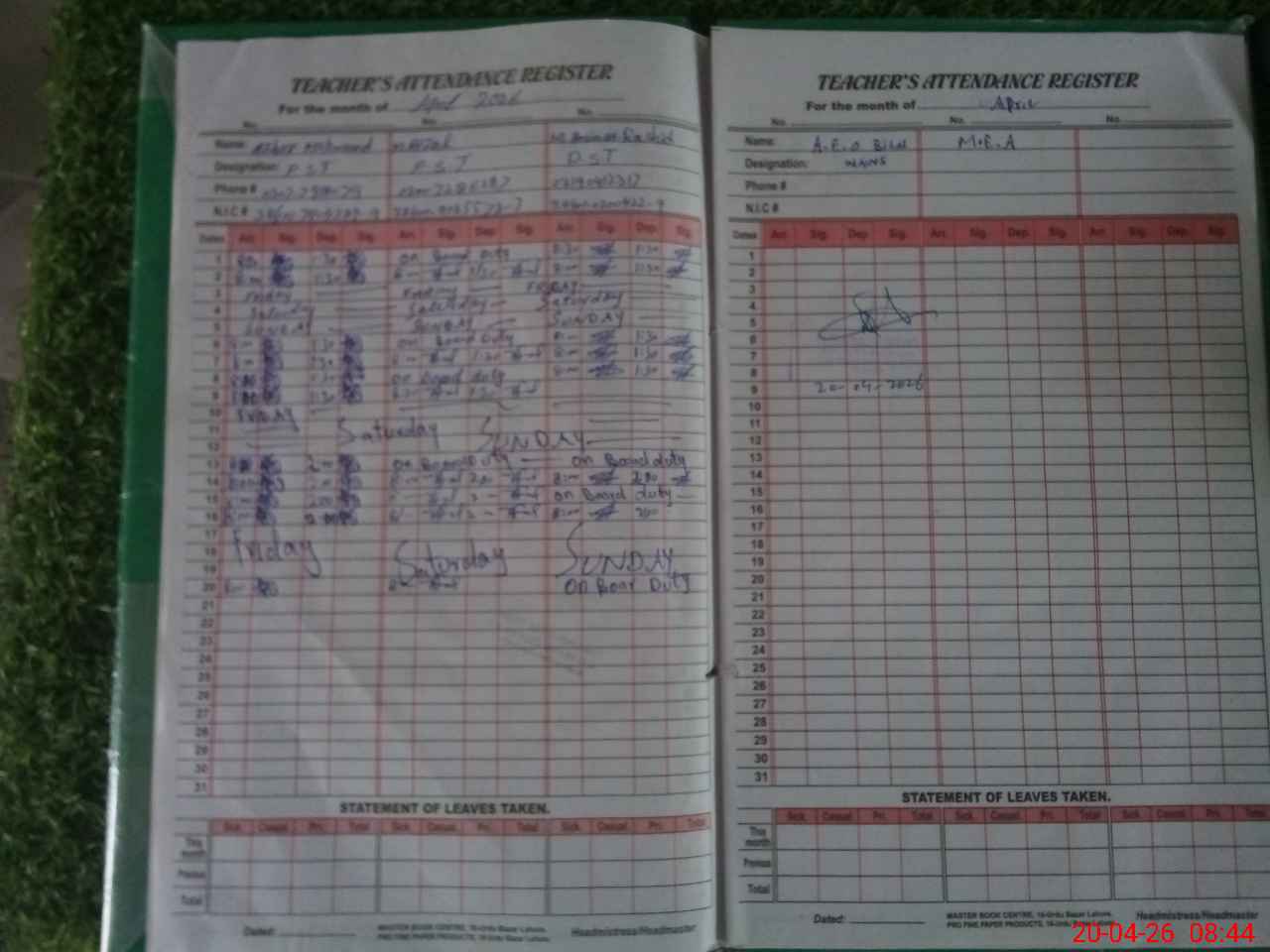 | Name: Az**** Me**** Designation: (School Headmaster's/Headmistress's) PST Phone/Cell Number: 03**** |