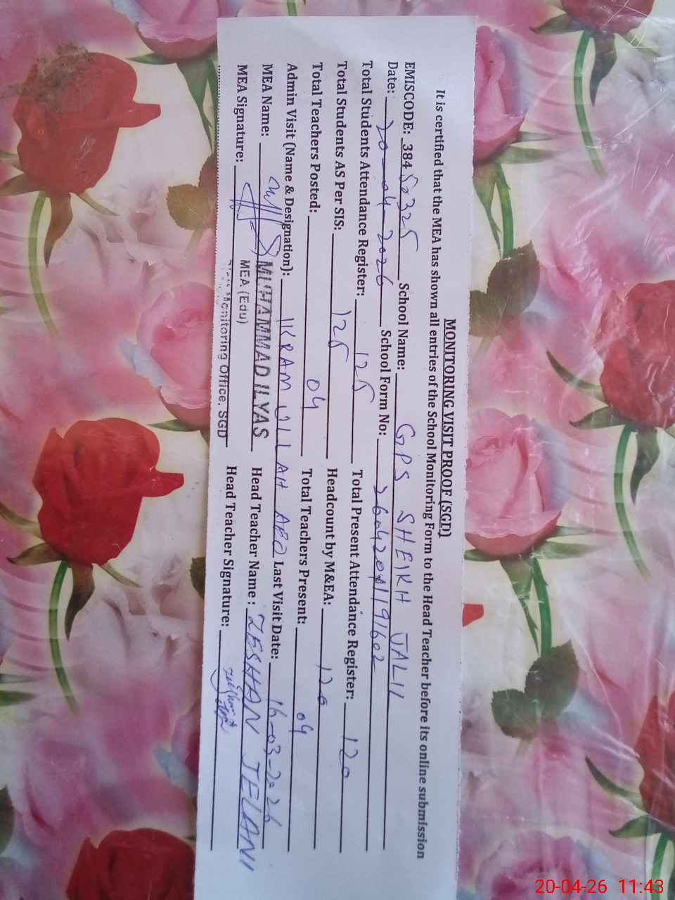 | EMIS Code: 38450325 | Name of School: GPS SHEIKH JALIL | |||
