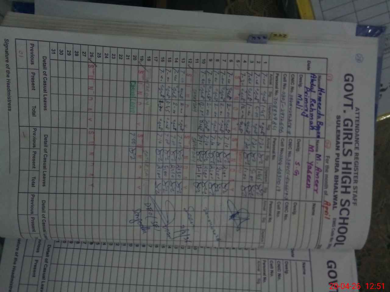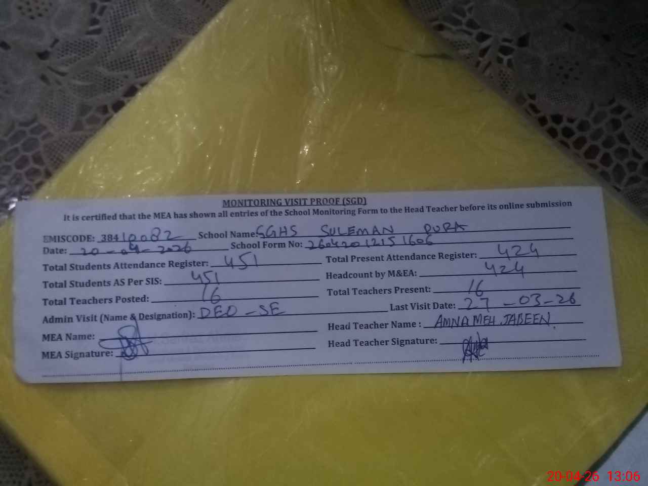 | EMIS Code: 38410082 | Name of School: GGHS SULEMAN PURA | |||