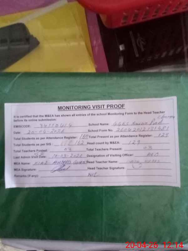 | EMIS Code: 34110414 | Name of School: GGES NAWAN PIND CHEEMA | |||
