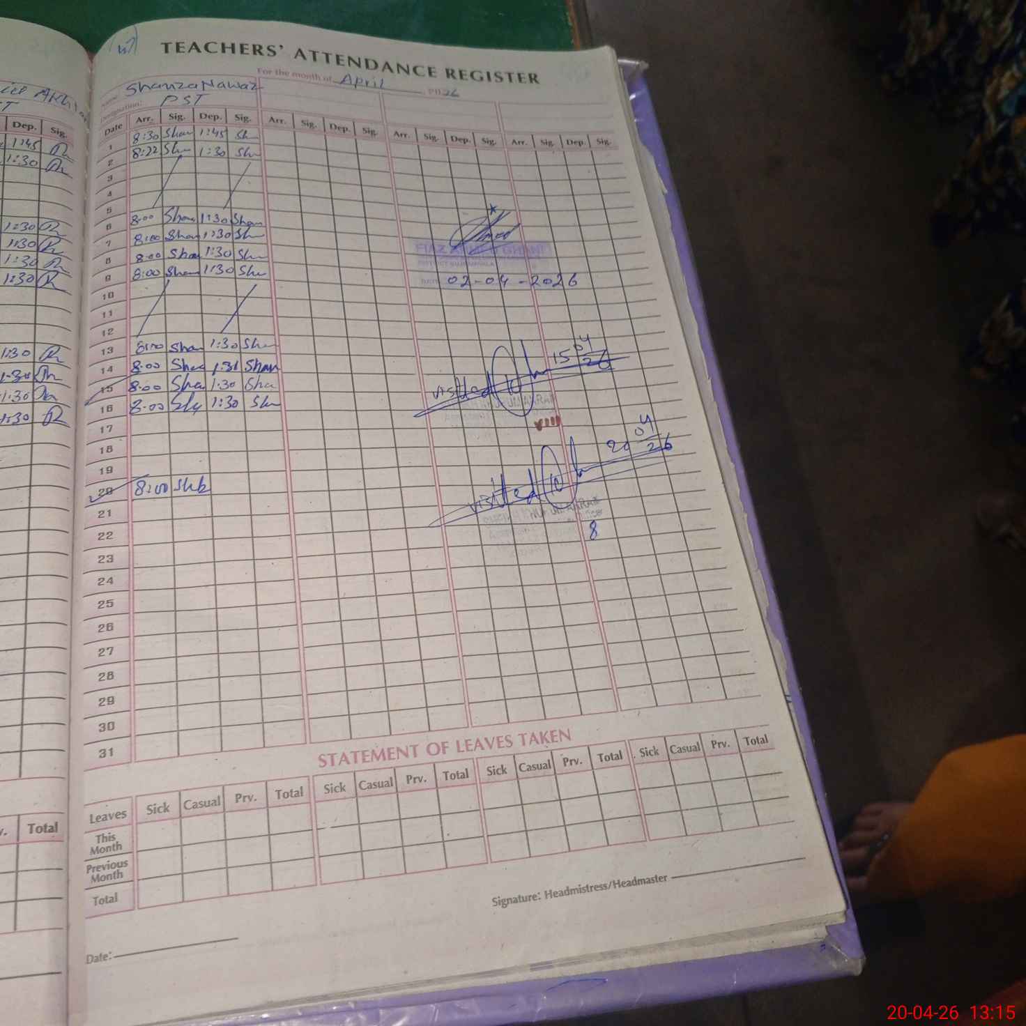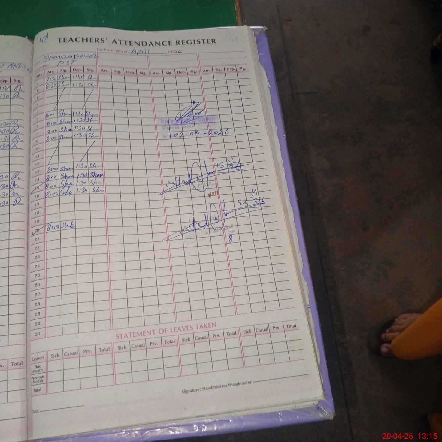 | Attendance Register | Head Teacher | MEA with School | Visit Proof |