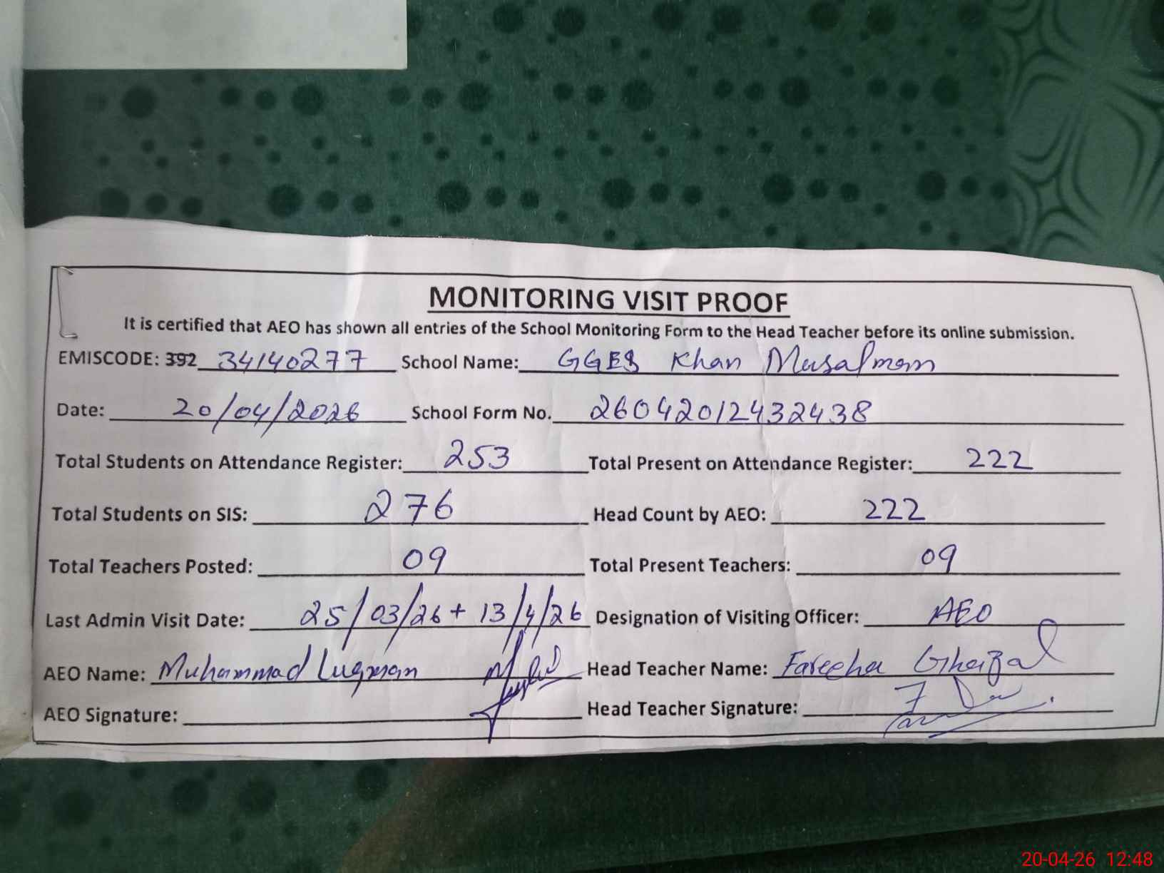 | EMIS Code: 34140277 | Name of School: GGES KHAN MUSALMAN | |||