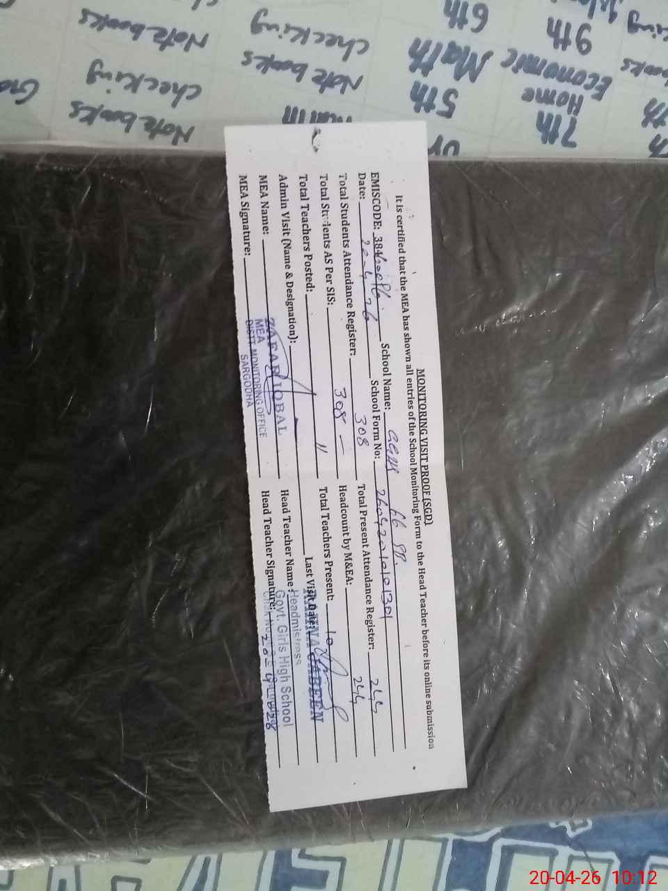 | Attendance Register | Head Teacher | MEA with School | Visit Proof |