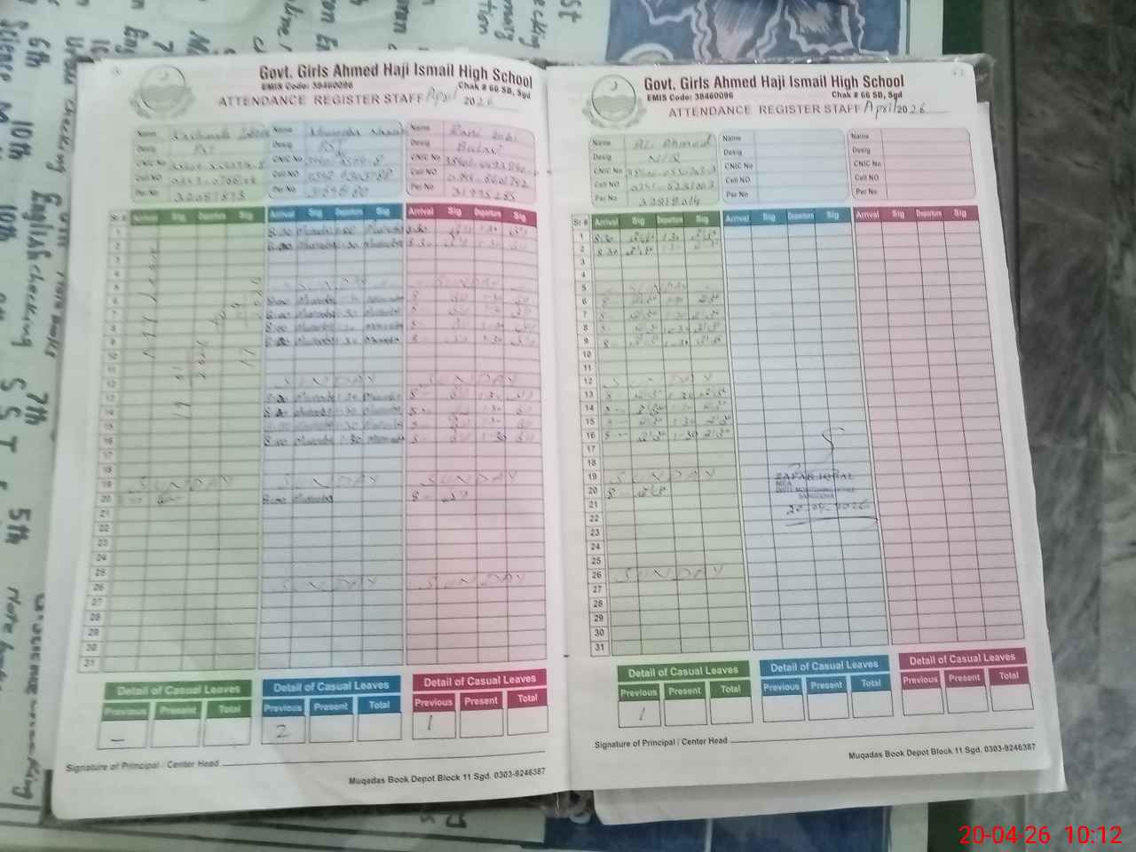 | CNIC | Full Name | Designation | R/C | Absence During Last Calender Month |