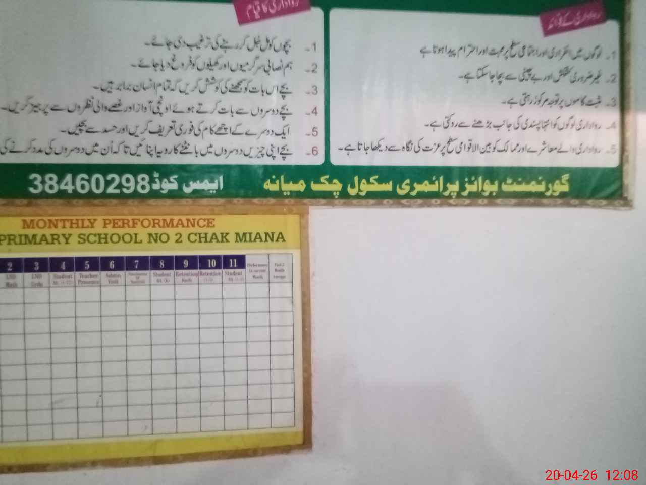 | EMIS Code: 38460298 | Name of School: GES CHAK MIANA | |||