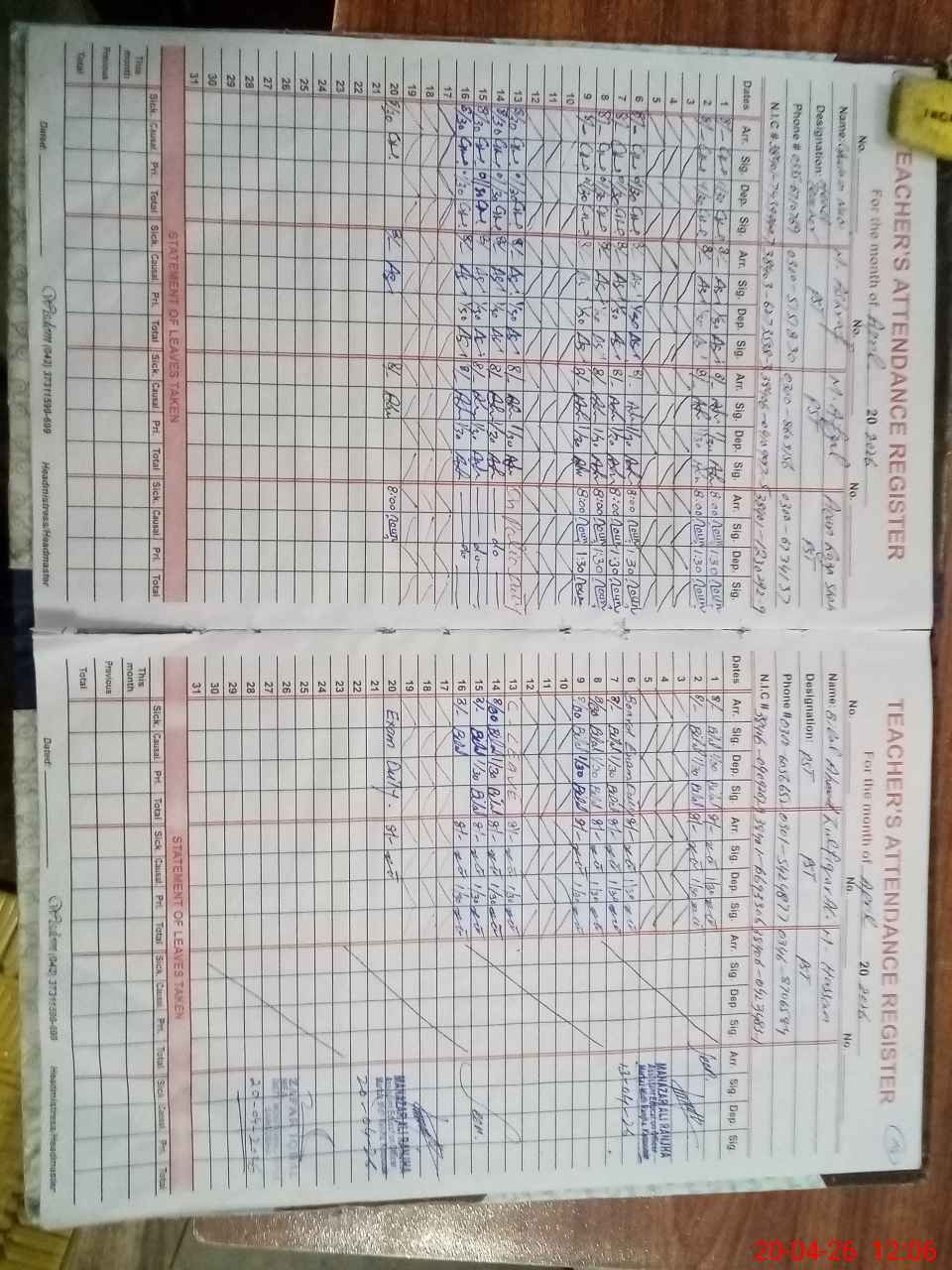 | 38**** | Bi**** Ah**** | PST Science/Maths | Regular | 0 | 0 | 0 | 0 | 0 | 0 | 0 | 0 | 0 | Exam Duty |