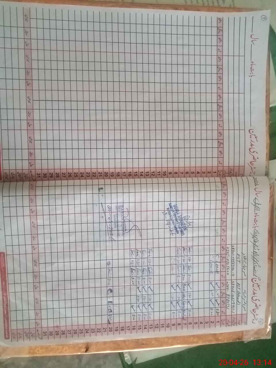 | CNIC | Full Name | Designation | R/C | Absence During Last Calender Month |