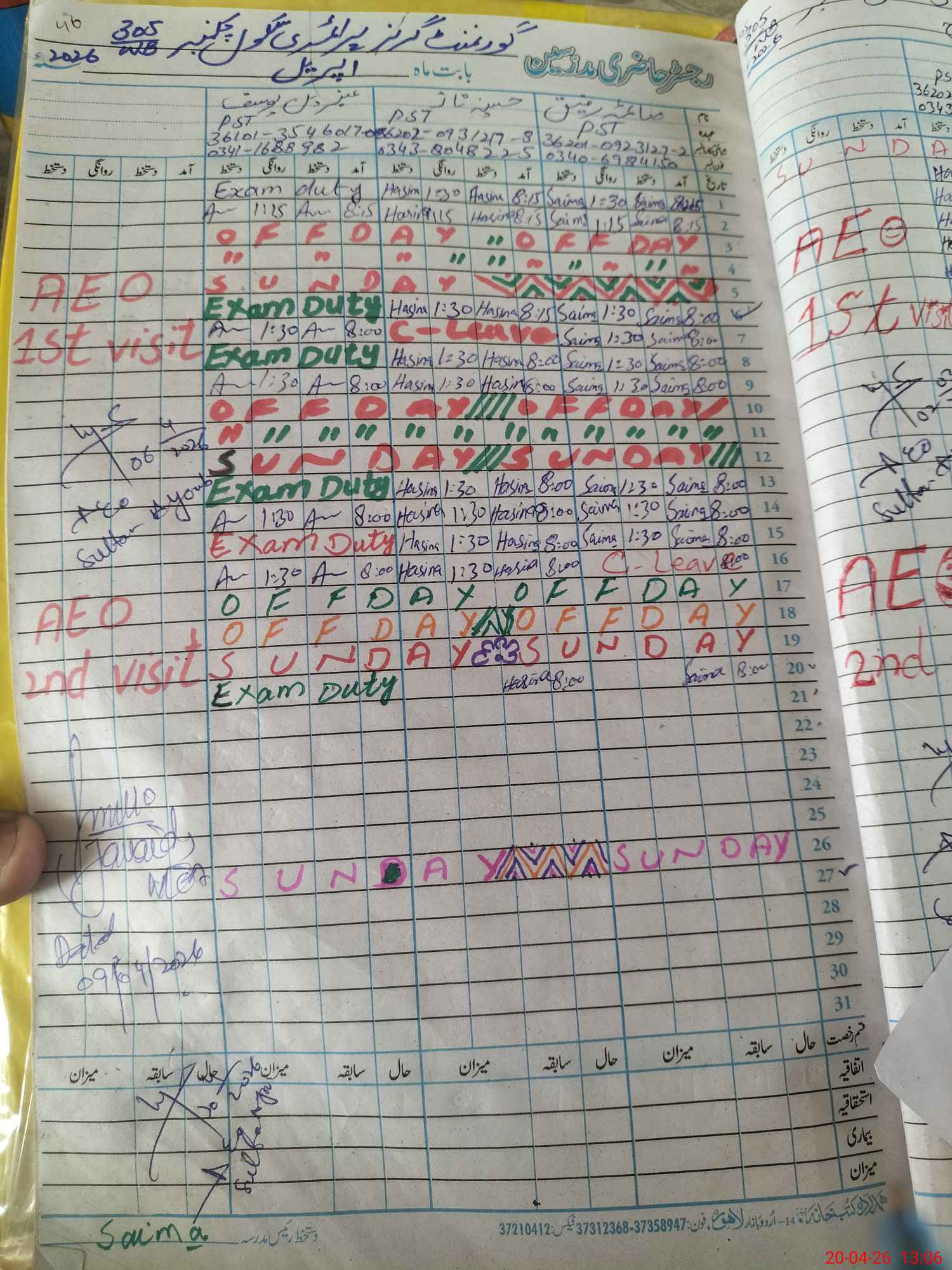 | 36**** | Am**** Yo**** | PST Science/Maths | Regular | 0 | 0 | 0 | 0 | 0 | 0 | 0 | 0 | 0 | Exam Duty |