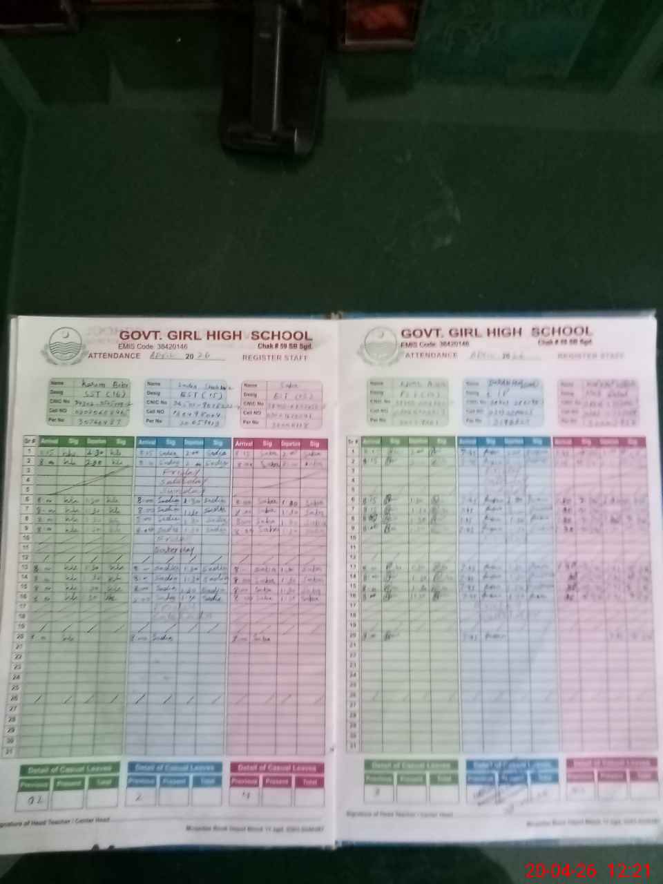 | CNIC | Full Name | Designation | R/C | Absence During Last Calender Month |