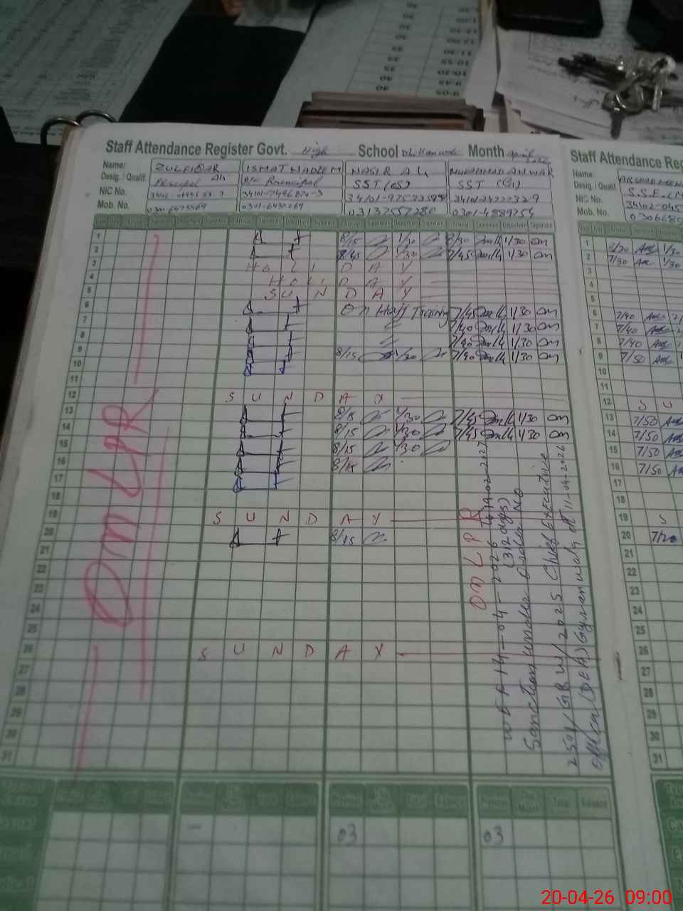| 34**** | Mu**** Ri**** | PST Science/Maths | Regular | 0 | 0 | 0 | 0 | 0 | 0 | 0 | 0 | 0 | Exam Duty |