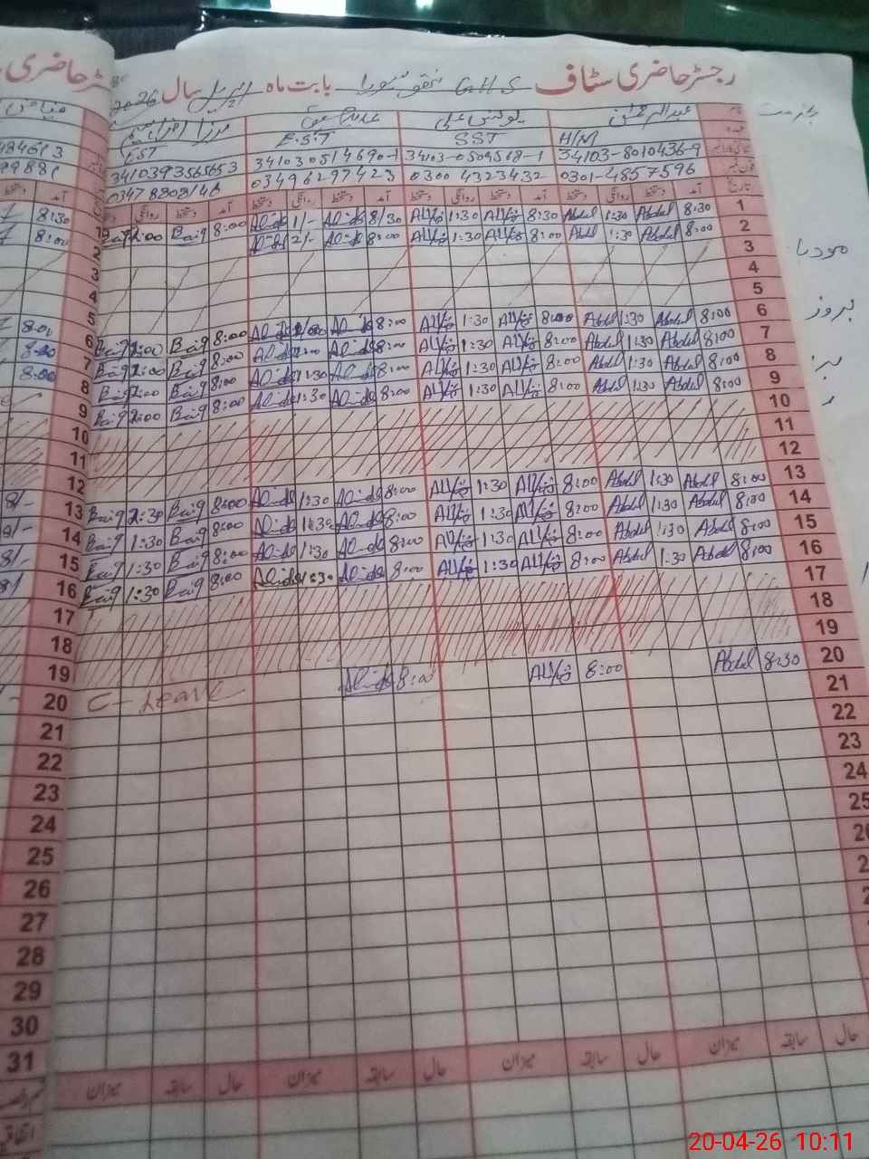| CNIC | Full Name | Designation | R/C | Absence During Last Calender Month |