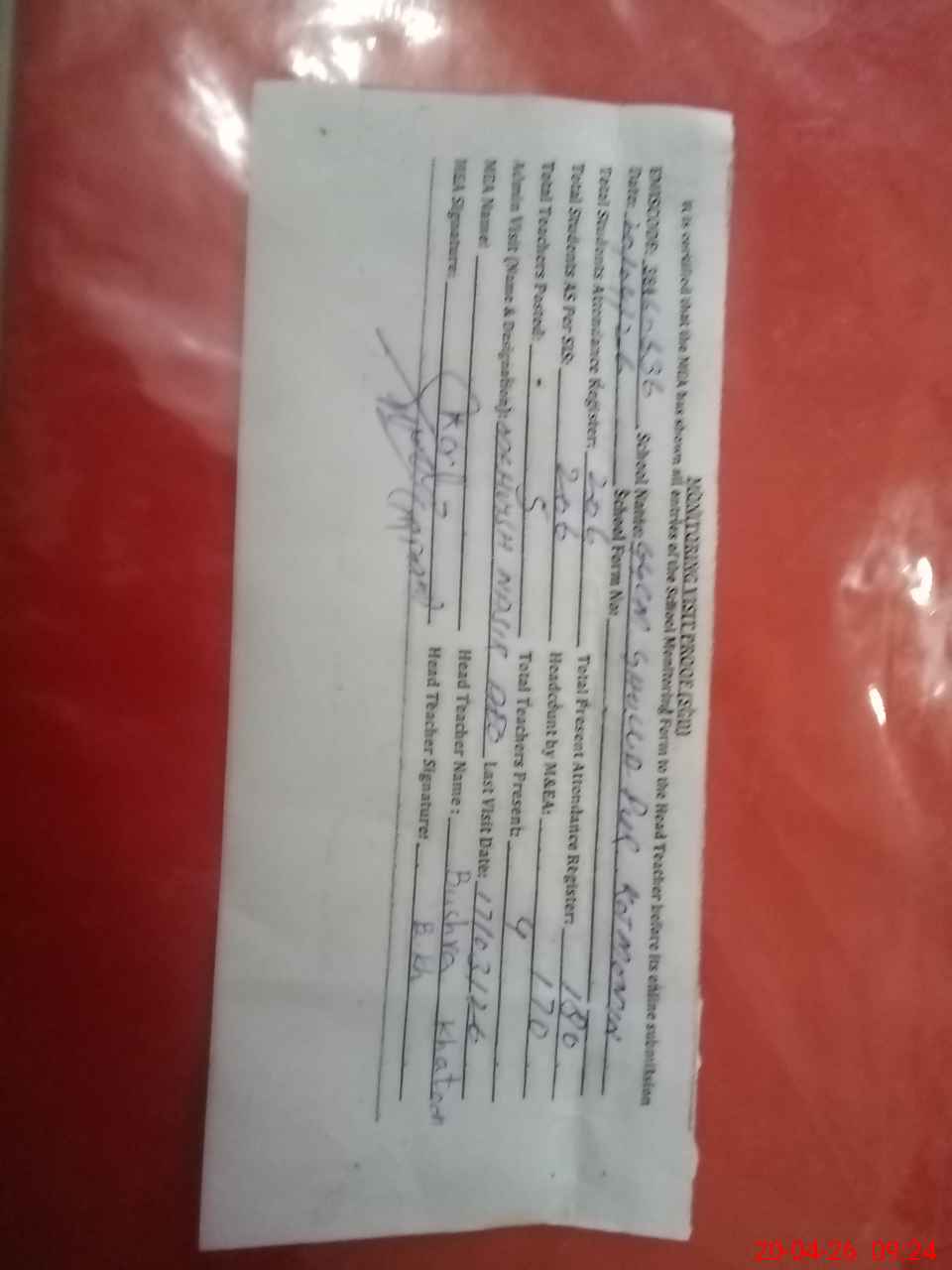 | Certified that this School was Inspected by the Undersigned MEA/DMO Today and the Information Stated Above is as Per Record. | |||||